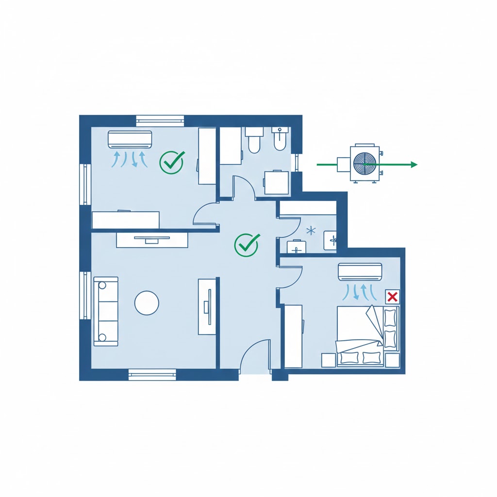 Kľúčové pravidlo: Vyhnite sa priamemu prúdeniu vzduchu na miesta, kde dlhodobo sedíte (pohovka, pracovný stôl) alebo spíte (posteľ).