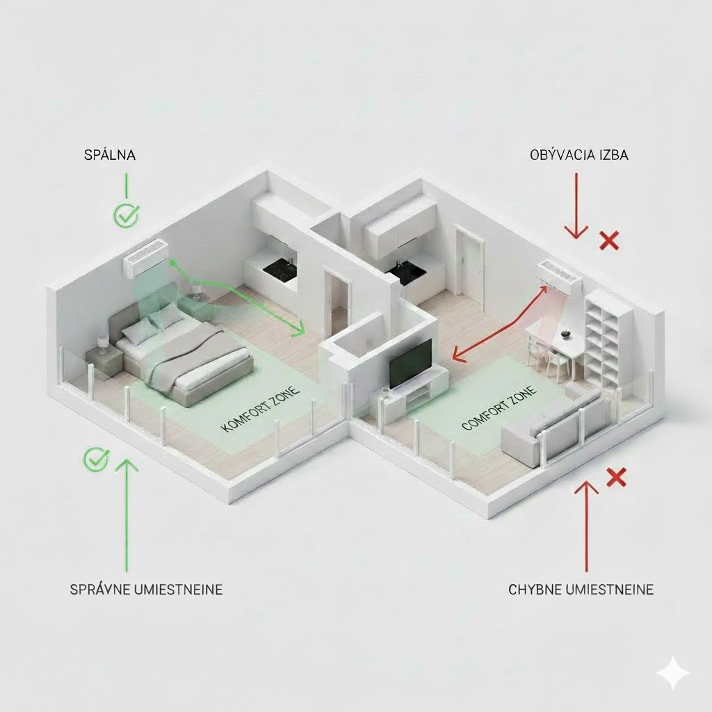 Kúpa kvalitnej klimatizácie je len polvica úspechu. Tou druhou je jej správne umiestnenie v priestore. Cieľom je dosiahnuť stabilnú teplotu bez toho, aby ste sa cítili ako v mrazničke alebo museli zvyšovať hlasitosť televízora.